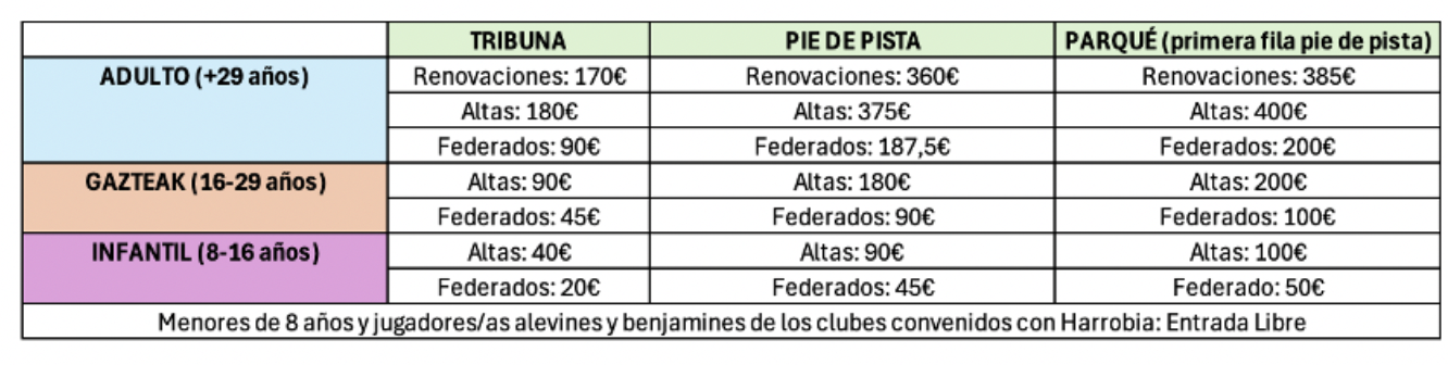 - Txartelak: Aurten txartel fisiko berriak jaulkiko dira abonatu guztientzat (berritzeak eta altak). Pabiloirako sarrera txartel digitalarekin egin ahal izango da, fisika aurkeztu beharrik gabe. Nolanahi ere, txartel fisikoa doan eskatu ahal izango da.