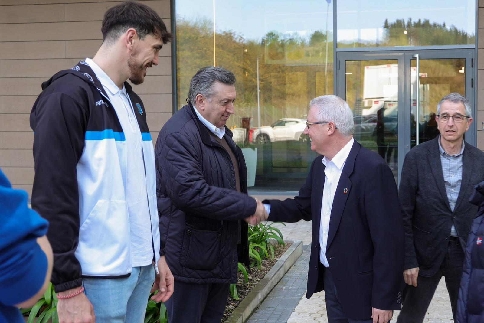 El diputado foral de Sostenibilidad y Medio Ambiente, José Ignacio Asensio; la directora de Transición Ecológica, Mónica Pedreira; y el director general de la empresa de gestión de residuos de Gipuzkoa (GHK), César Gimeno, explicaron pormenorizadamente a los representantes del club Gipuzkoa Basket los fundamentos y objetivos de una infraestructura moderna, que ha sido capaz de situar a Gipuzkoa, durante los últimos cuatro años, en posiciones de liderazgo dentro de la Unión Europea respecto al cumplimiento de los objetivos globales fijados en materia de recogida selectiva de residuos urbanos y reciclaje.