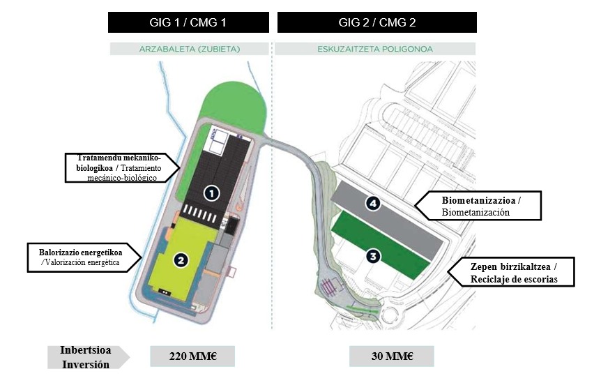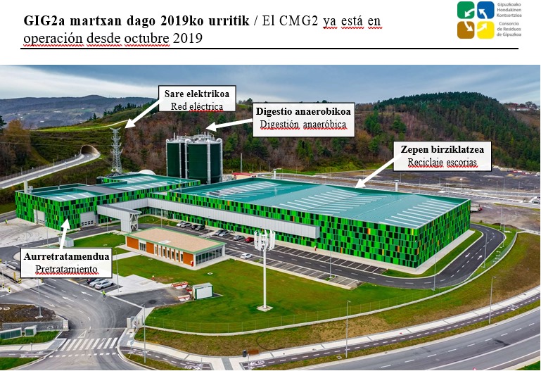 El funcionamiento del Complejo Medioambiental de Gipuzkoa, en su conjunto, garantiza un modelo de economía circular en el reciclaje, tratamiento y aprovechamiento de los residuos sólidos urbanos. Cuenta a su vez con el complemento de dos plantas de recuperación de envases, ubicadas en Legazpi y Urnieta, y una planta de compostaje, radicada en Epele.