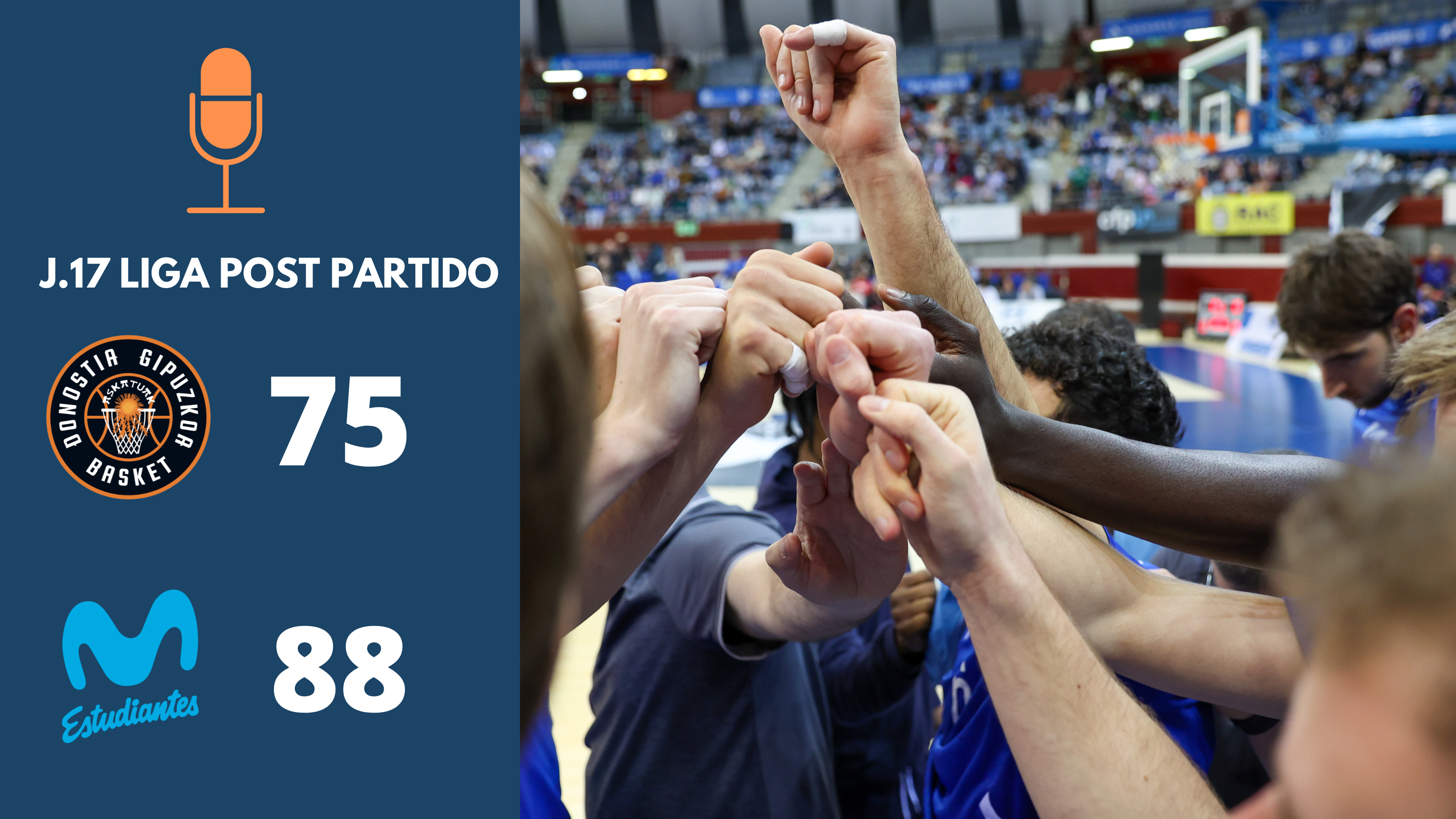 Se ha disputado la decimoséptima jornada de liga entre el Inveready Gipuzkoa y el Movistar Estudiantes. El resultado final ha sido 75 – 88 , con victoria para el Movistar Estudiantes. El mejor valorado, del Inveready Gipuzkoa Basket ha sido Josip Vrankic con 15 de valoración y 18 puntos anotados.