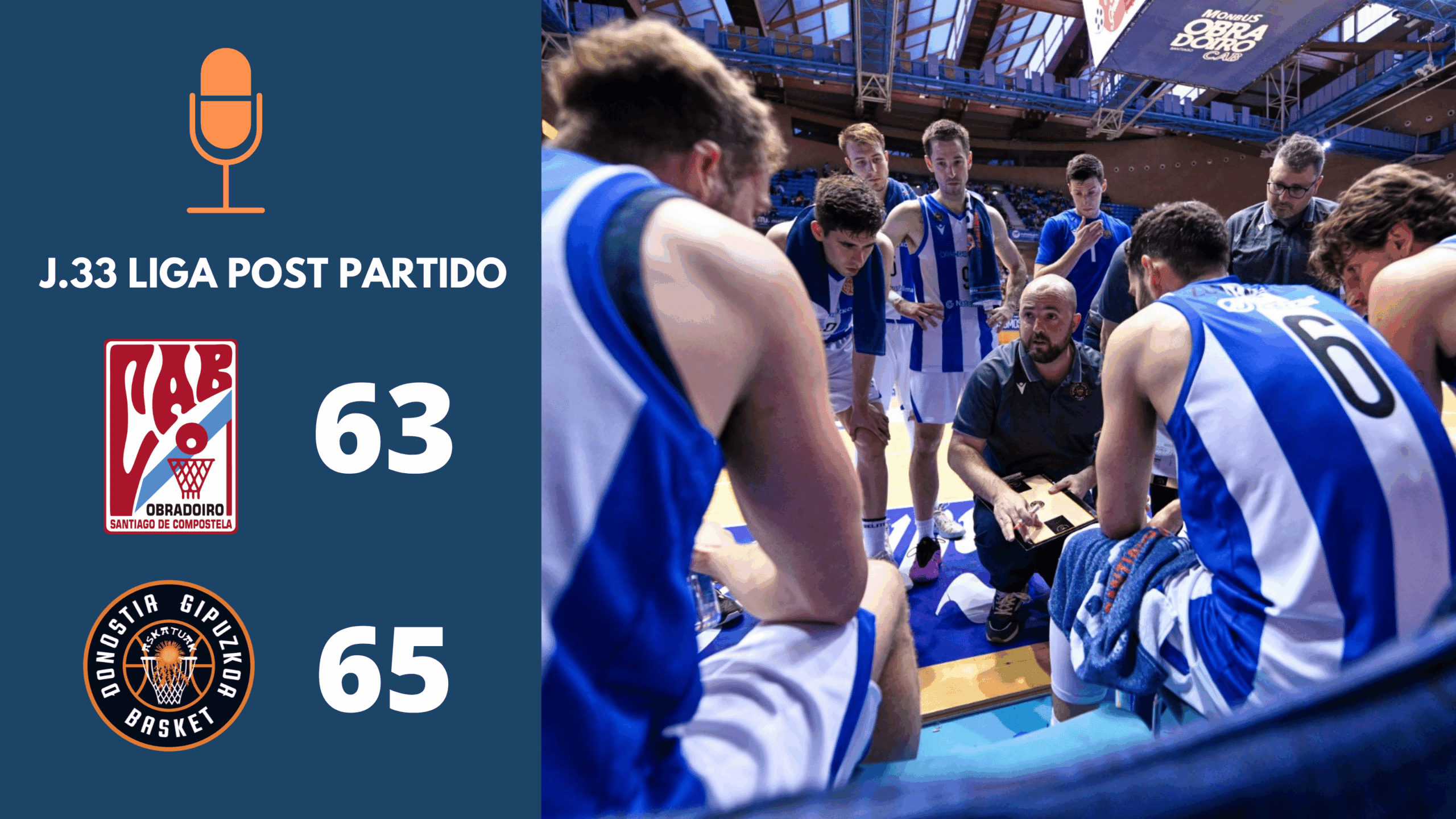 Se ha disputado la trigésima tercera jornada de liga entre el Monbus Obradoiro y el Inveready Gipuzkoa Basket. El resultado final ha sido 63-65, con victoria para el Inveready Gipuzkoa Basket. El jugador más valorado del equipo con 19 puntos de valoración y 18 puntos anotados, ha sido Daishon Smith.